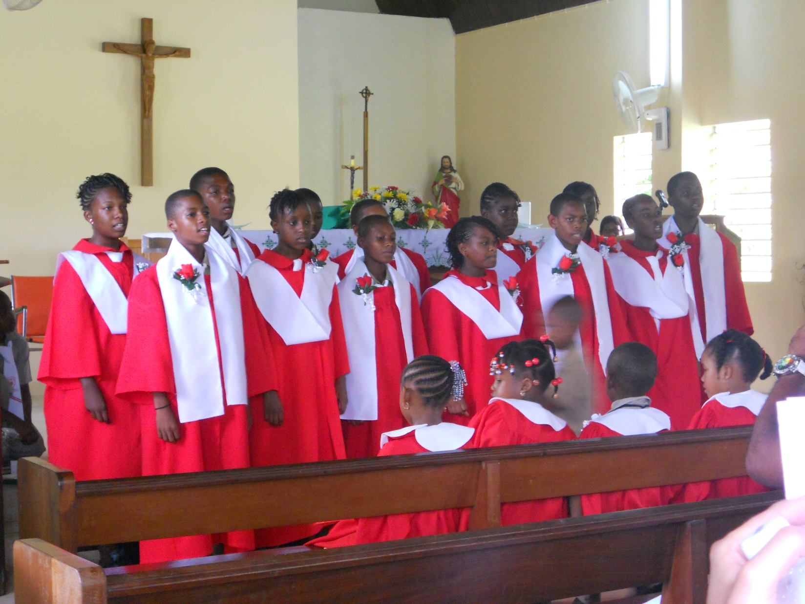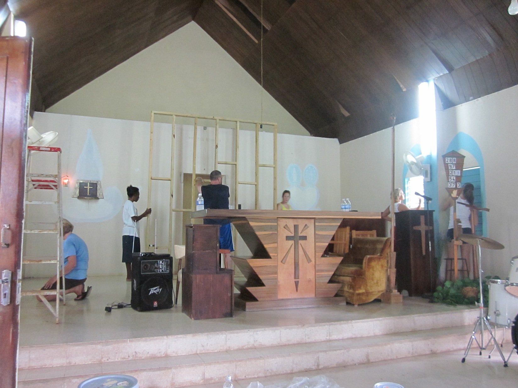 The physical labor came in the form of painting the interior of the church, building a back drop on the altar, repairing kneelers and other general repairs to the school and church. Thanks to donations from the Altoona Johnstown Diocese, our sister parish received a new Cross, Stations of the Cross, a Holy water font, Baptismal font and new Ambo. Many hours and days were spent scraping, painting and cleaning the church to prepare for the 6th grade Graduation Ceremony. Thirteen 6th graders and 4 kindergarten students participated in the graduation ceremony.