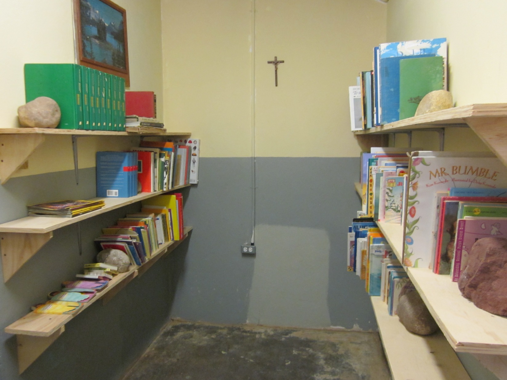 A few storage rooms were cleaned out to create a teacher supply room, which was stocked with supplies provided by members of the group and the Altoona-Johnstown Diocese. Also created was a school library and reading room. The books were donated by students in the various Catholic schools within the Diocese during the Lenten season. Some general maintenance was completed around the school yard, rectory and parish. A book stock room was organized, new swings were made for the playground and a mini bridge was built to cross into the school yard.