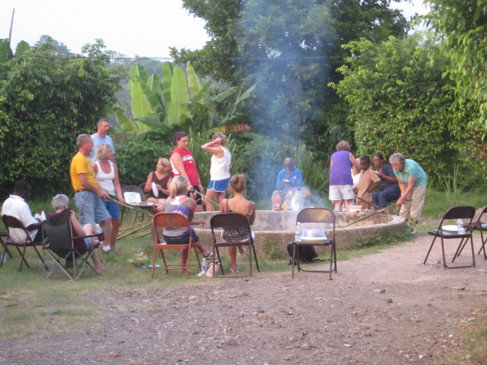 The missionaries had many “fun” days and enjoyed the company and culture of the parishioners from St. Robert Bellarmine. They were introduced to the “river” (creek in our country) to cool off after our hot working days. The Jamaican friends were introduced to a cookout and taught how to cook hot dogs on sticks and make smores. They also had the opportunity to visit some of the local shops and businesses and spent a day at the beach in Ocho Rios